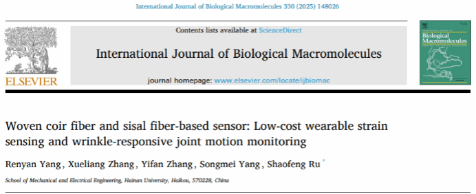 近日,太阳成集团tyc234cc汝绍锋副教授团队在基于天然植物纤维的低成本、环保型柔性传感器研究方面取得重要进展。相关研究成果先后发表在国际期刊《International Journal of Biological Macromolecules》(IF 8.5)和《Chemical Engineering Journal》(IF 13.2)上。